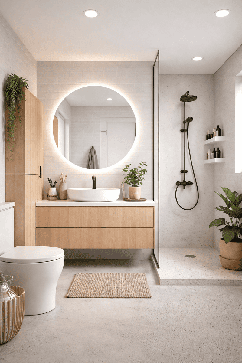Egy prémium fürdőszoba, ahol minden elem pontosan illeszkedik egymáshoz, és a tér is maximálisan ki van használva.